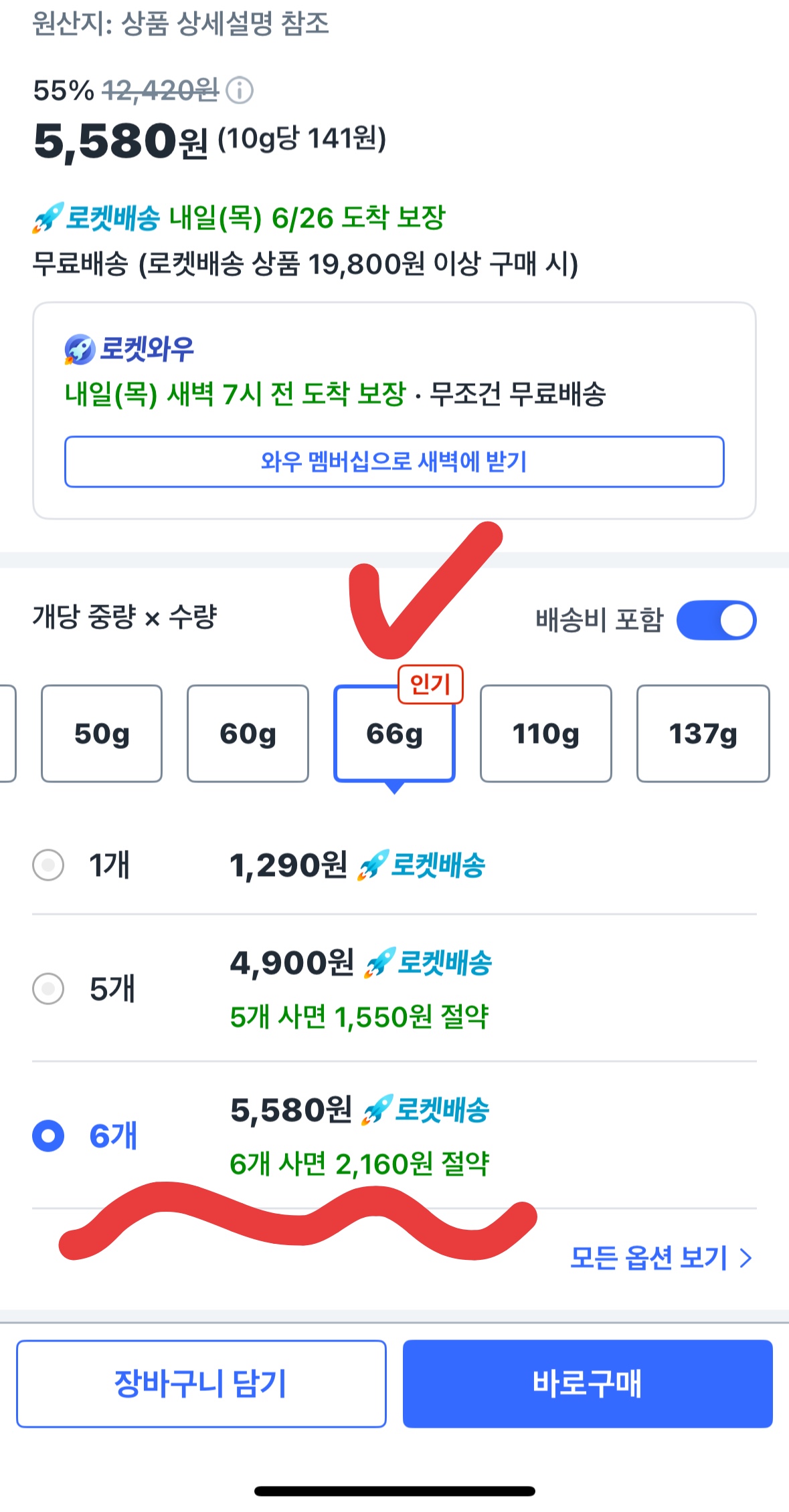 - 핵심 조건: 로켓배송 상품 (와우회원 무료배송)