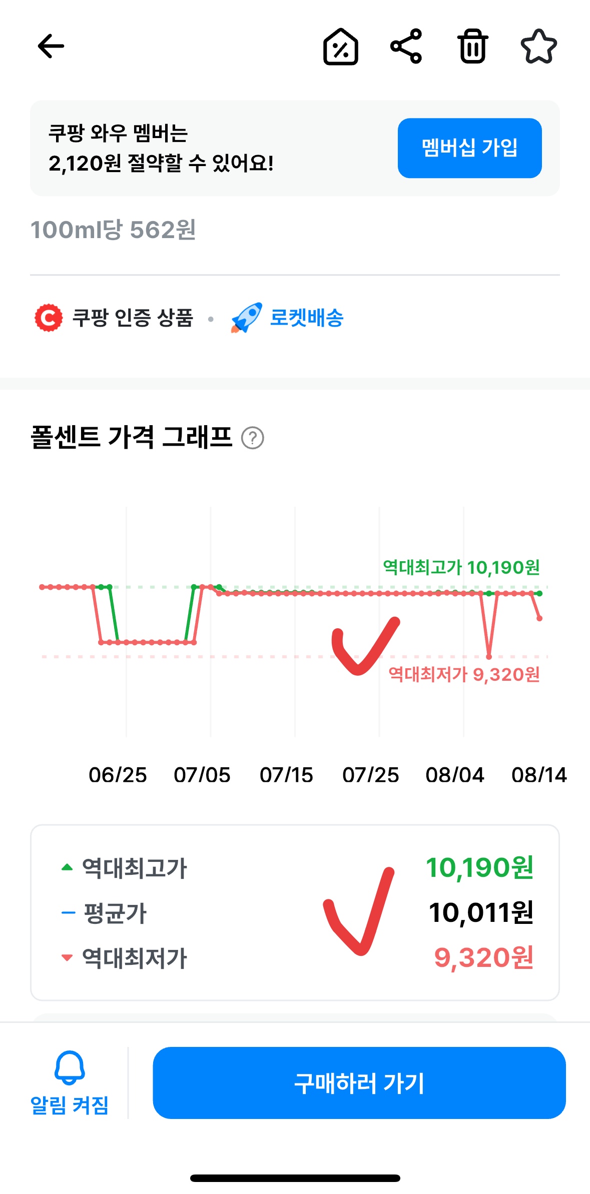 | 이전 역대 최저가 | 9,320원 | 약 518원 | 이 가격도 저렴하다고 생각했는데... |