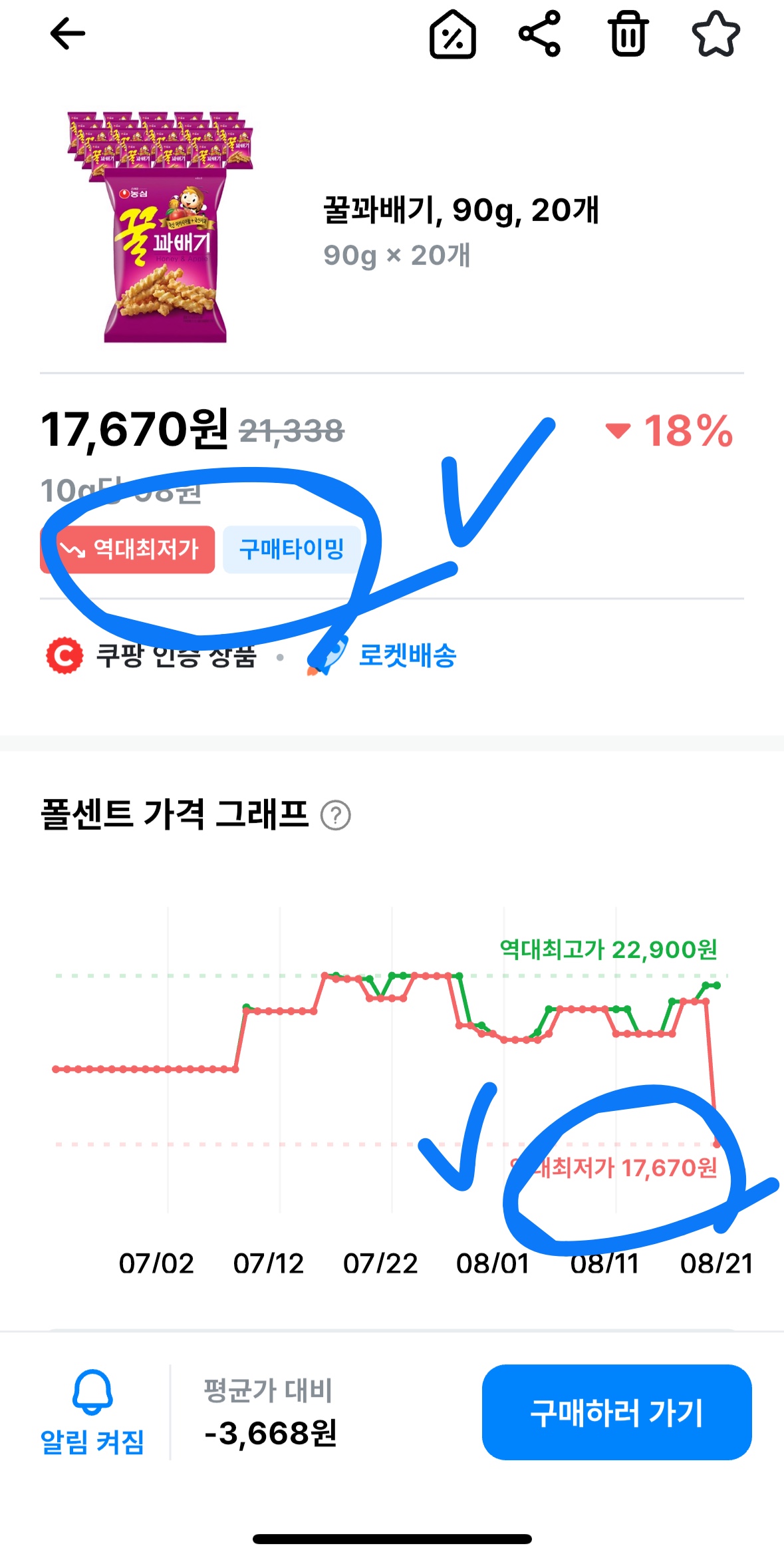 "늘 먹던 과자인데, 가격이 좋아봐야 얼마나 좋겠어?" 라고 생각하실 수 있습니다. 그래서 제가 직접 가격 변동 그래프를 가져와서 확실하게 비교해 드립니다. 오늘 보부상 보따리가 왜 '역대급'인지 눈으로 직접 확인해 보시죠.
