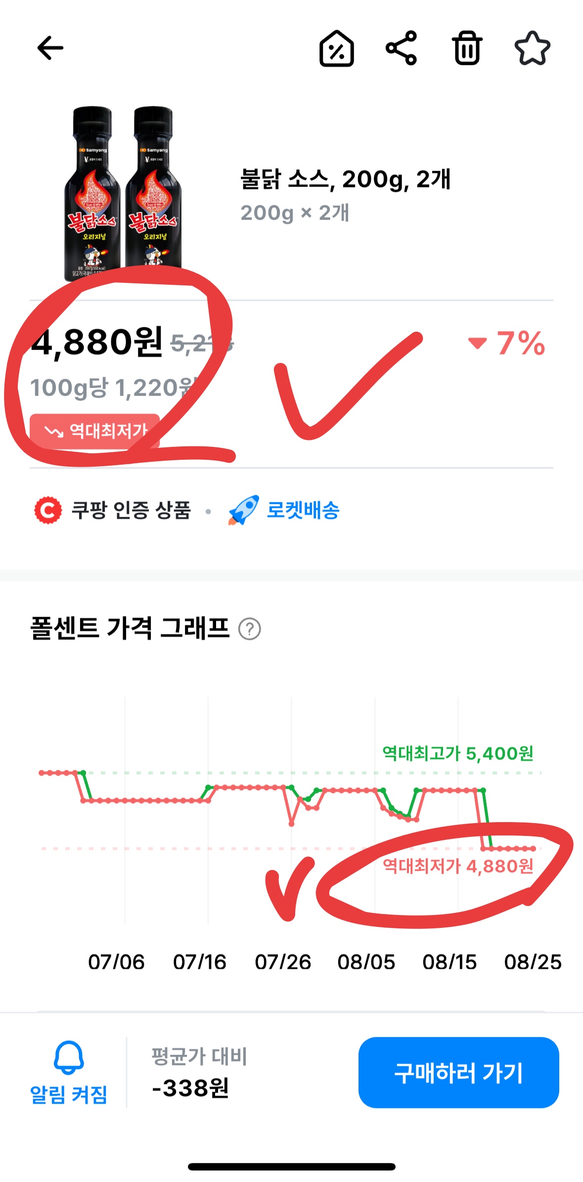 | 이전 역대 최저가 | 4,880원 | 100g당 1,220원 | 이 가격을 기다렸던 분들 많으실 겁니다. |