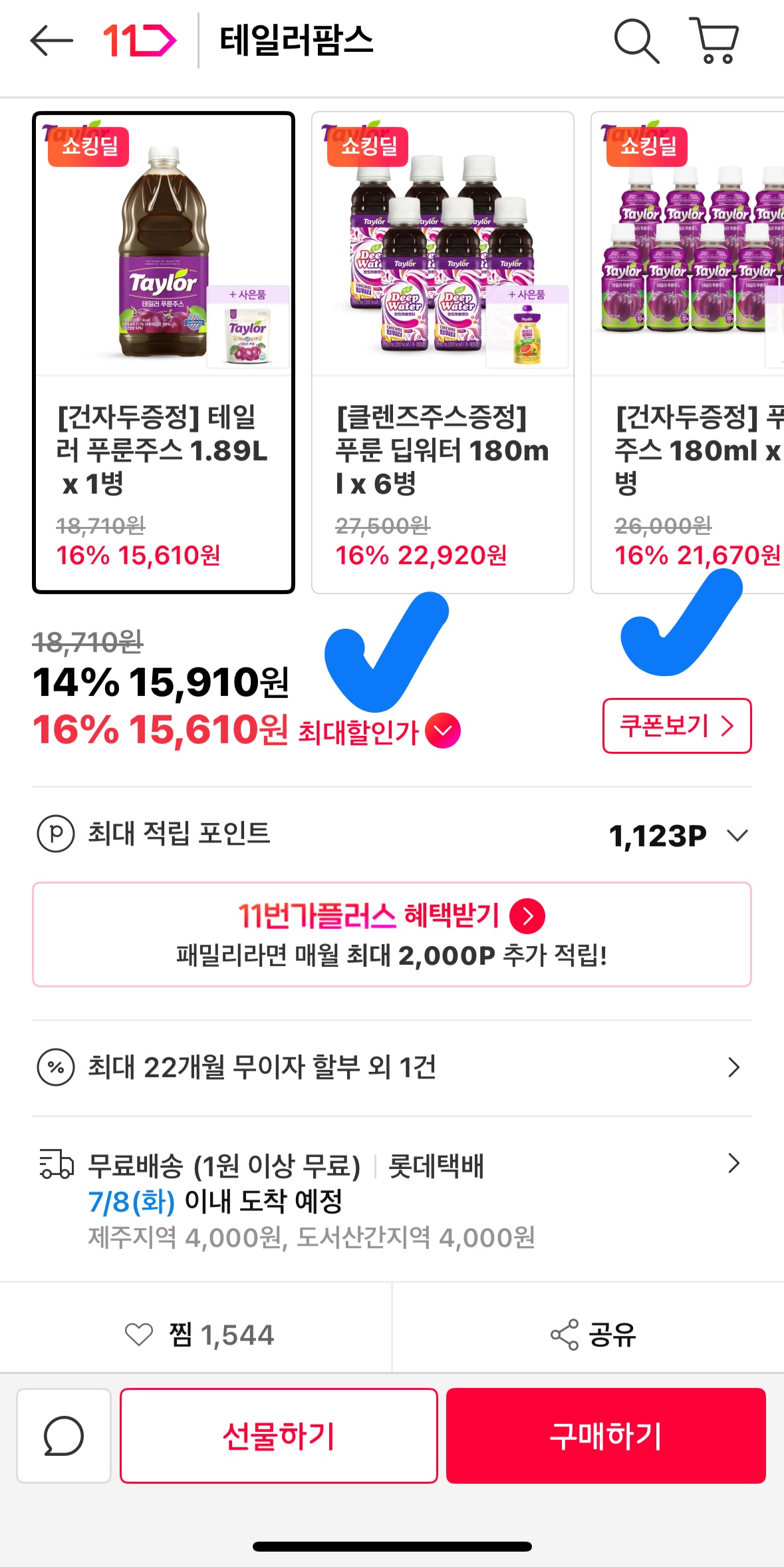 - ✅ 상품: 장 건강 솔루션, 테일러 푸룬주스 1.89L + 건자두 증정