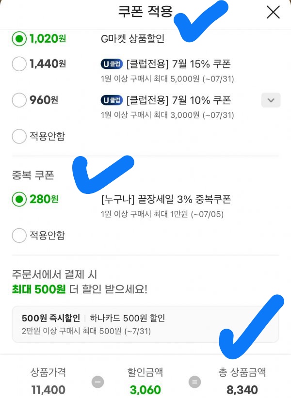 - ✅ 핵심 꿀팁: G마켓 할인 + 중복쿠폰 + 카드사 할인 3단 콤보를 모두 적용해야 최저가 완성!