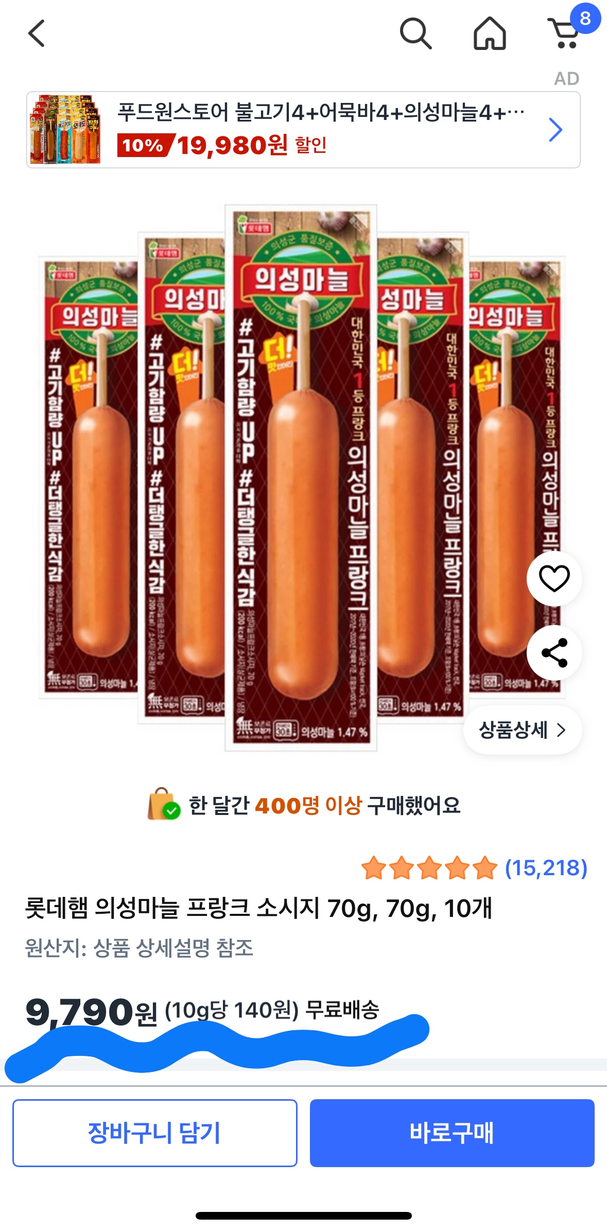 "오늘 저녁 뭐 먹지?"치킨은 부담스럽고, 라면은 다음 날 얼굴이 보증하죠. 늦은 밤, 출출한 배를 달래줄 '죄책감 없는' 야식이 필요할 때, 우리는 냉장고와 찬장을 뒤지기 시작합니다. 그래서 오늘은 밥반찬, 술안주, 캠핑 필수템이자, 영화 '황해'의 하정우 먹방으로 유명해진 '황해 정식'의 핵심 재료, '롯데햄 의성마늘 프랑크 소시지'를 1,000원도 안 되는 가격에 쟁여두는 보따리를 풀어봅니다. 🌭 오늘의 보따리: 롯데햄 의성마늘 프랑크 소시지상품: 롯데햄 의성마늘 프랑크 소시지 70g x 10개핫딜가: "9,800원" (1개당 980원)구매처: "쿠팡"혜택: 로켓배송 상품, 무료배송 💡 사이버 보부상의 심층 분석 1. 그래서, 맛은 어떤가? (솔직한 사용 후기)'의성마늘 프..